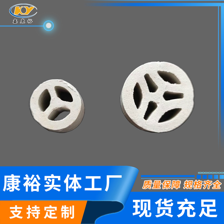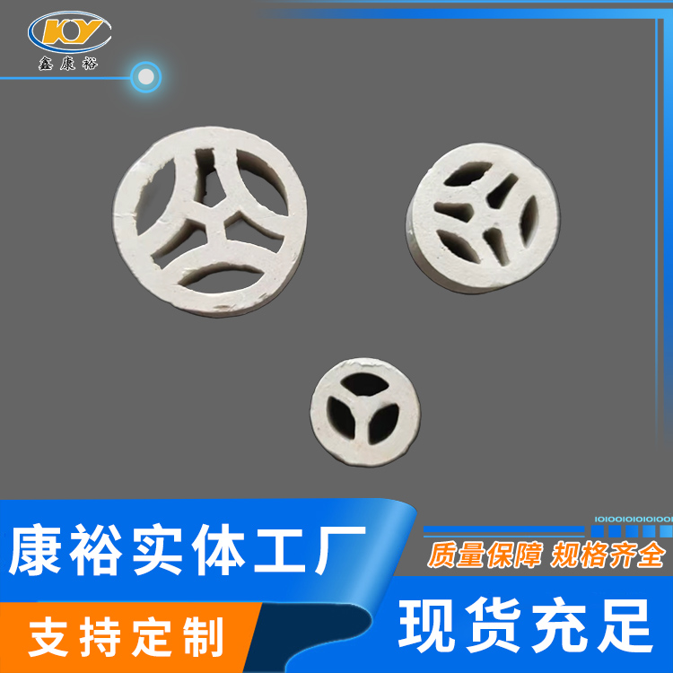 陶瓷三丫環(huán)是一種經(jīng)外觀獨(dú)特設(shè)計(jì)加工成的一種新型高效散堆填料,產(chǎn)品高徑比約為2:1,內(nèi)部設(shè)有一個(gè)或三個(gè)“Y"型隔板,這樣增大比表面積,提高汽液分散性能,使汽液接觸更充分。陶瓷三丫環(huán)主要以萍鄉(xiāng)本地產(chǎn)優(yōu)質(zhì)高嶺土與石英、長(zhǎng)石等為原料,經(jīng)配料、球磨、真空練泥、模具設(shè)計(jì)、擠壓成型、干燥、燒結(jié)等加工而成的一種新型優(yōu)質(zhì)散堆陶瓷填料。