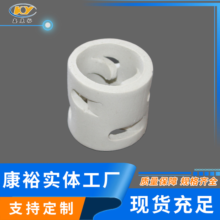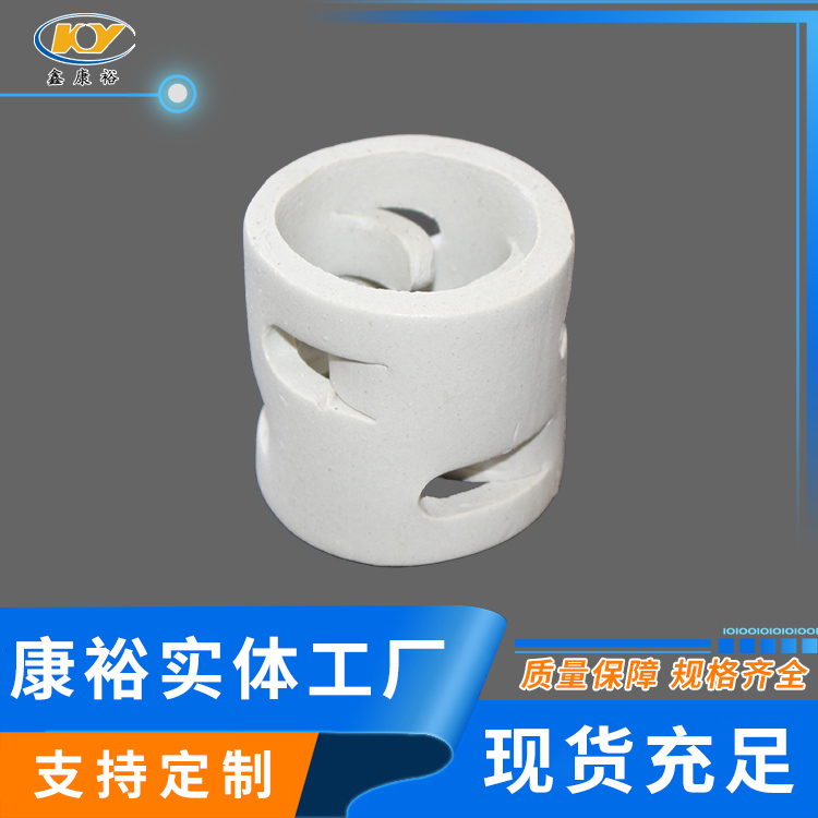 康裕陶瓷鮑爾環(huán)填料是一種高徑相等的開(kāi)孔環(huán)型填料,每層窗孔有5個(gè)舌葉,每個(gè)舌葉內(nèi)彎指向環(huán)心,上下兩層窗孔的位置相反錯(cuò)開(kāi),一般開(kāi)孔面積約占環(huán)壁總面積的30%左右。
